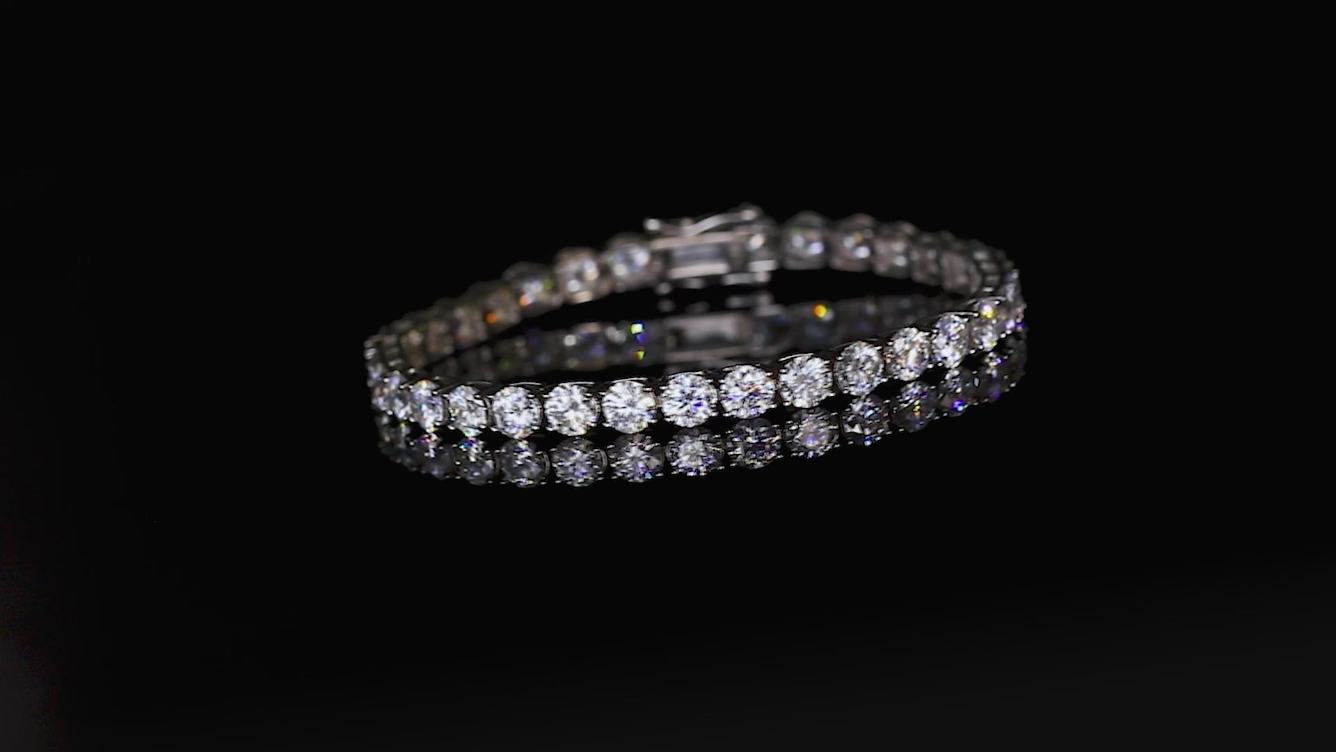 This timeless piece is a must-have for any jewelry collection. Expertly crafted with rhodium plating for lasting shine, the Classic Four-claws Moissanite Tennis Bracelet in Sterling Silver is the perfect complement to any outfit, providing a classic and elegant touch.